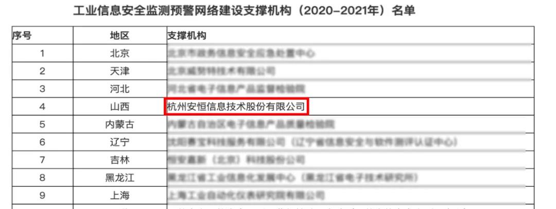安恒信息凭借在工业互联网安全领域的丰富应用案例和优秀解决方案,成功入选工业信息安全监测预警网络建设支撑机构。