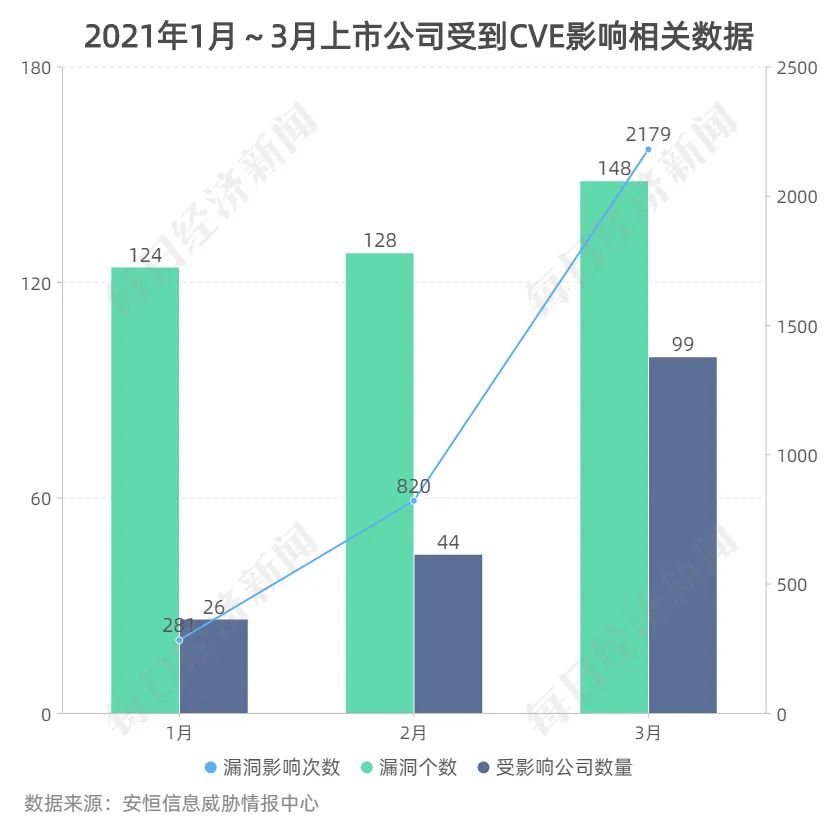 此次,安恒信息对3958家A股上市公司进行了2021年1月~3月的CVE安全漏洞影响分析。