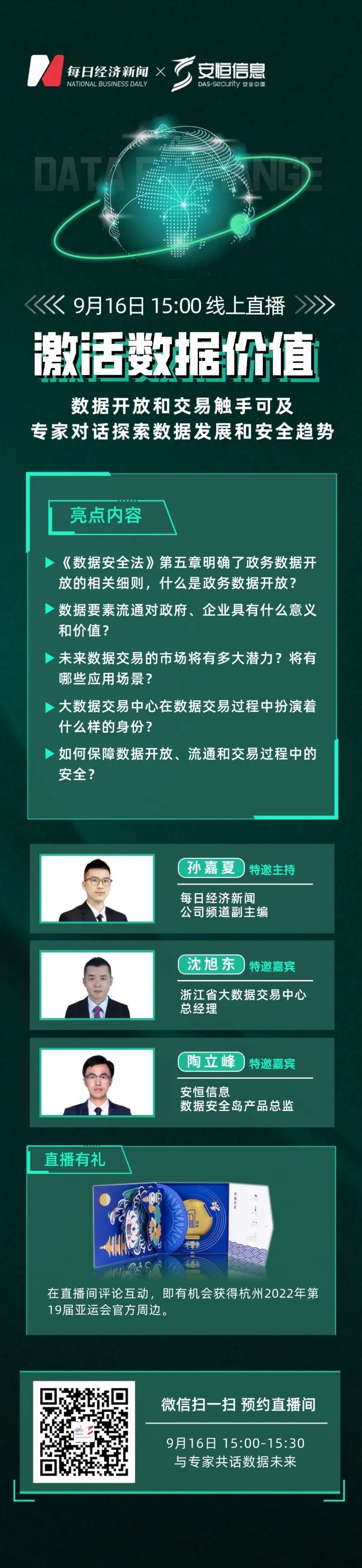 “每日经济新闻”与“安恒信息”第二期联合直播来啦,明天15:00见