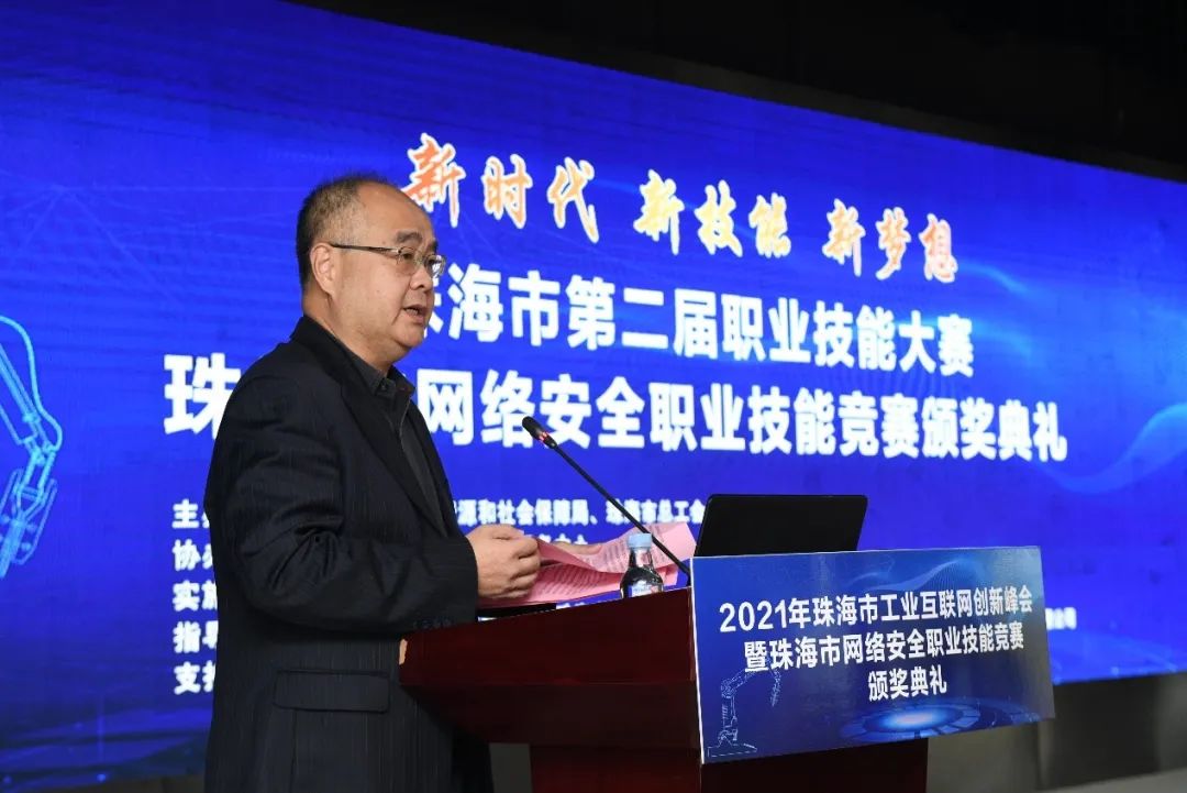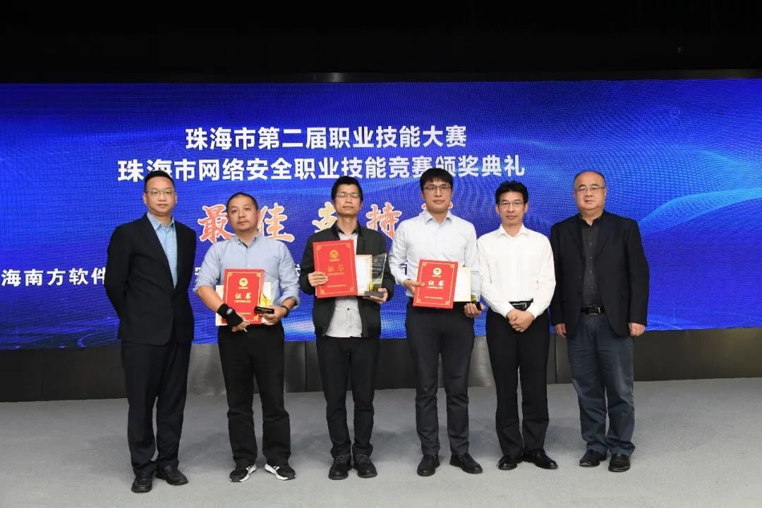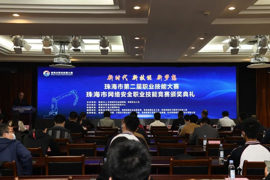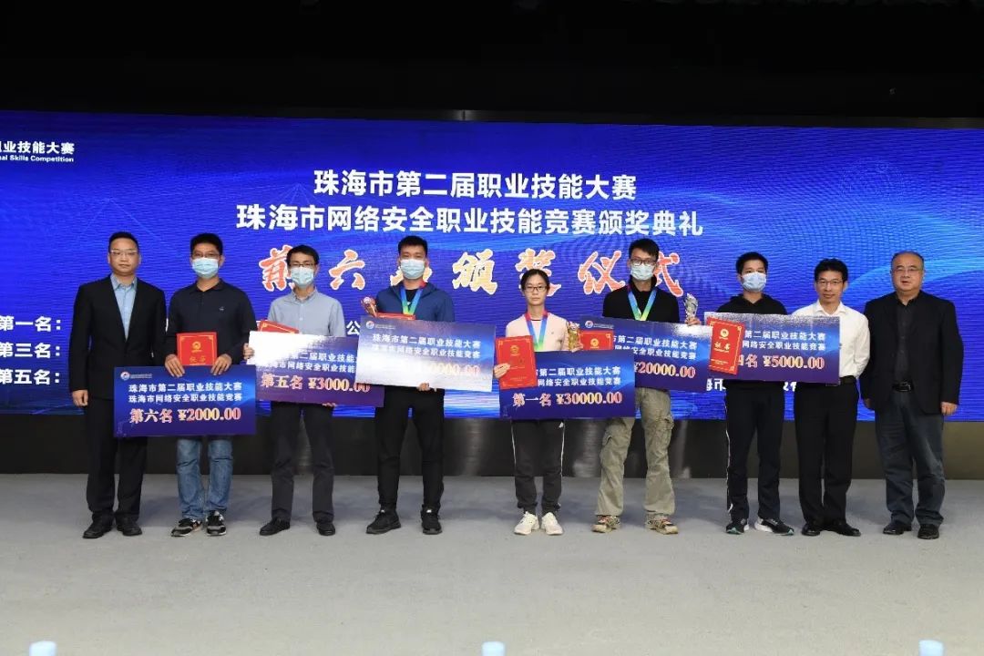 会上还举行了珠海市第二届职业技能大赛之珠海市网络安全职业技能竞赛颁奖典礼。珠海市委网信办、珠海市职业训练指导服务中心、珠海市工业互联网协会领导为获得前六名的参赛选手颁发了证书、奖杯及奖金,前三名选手还被授予“珠海市技术能手”称号。