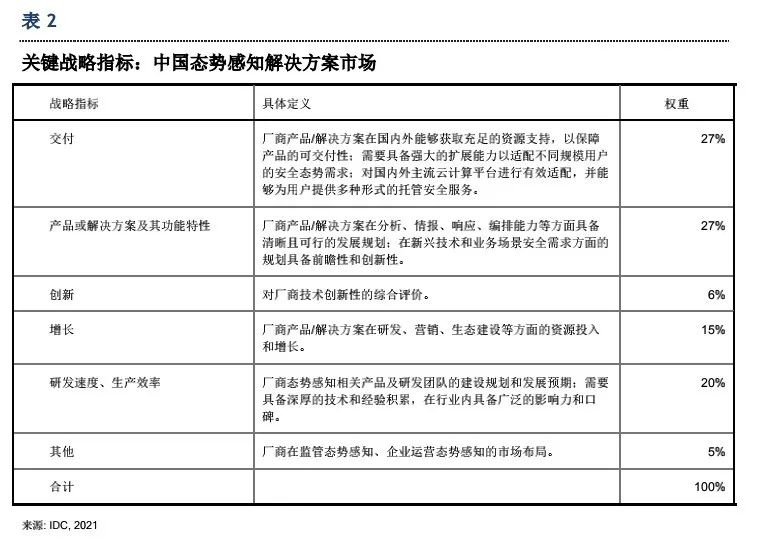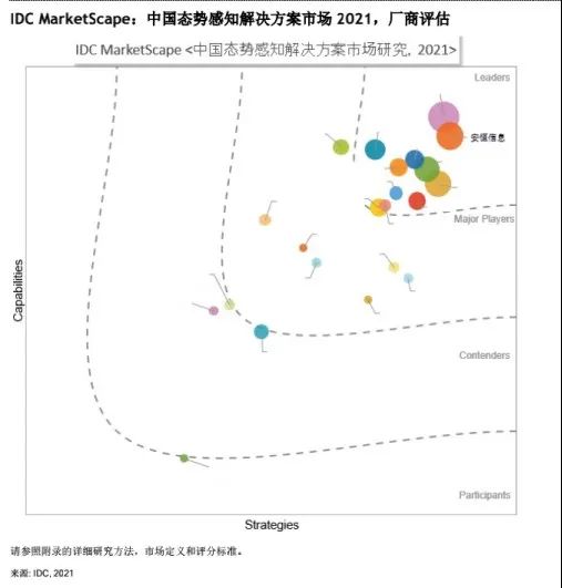 据《IDC MarketScape: 中国态势感知解决方案市场2021,厂商评估》报告绘制