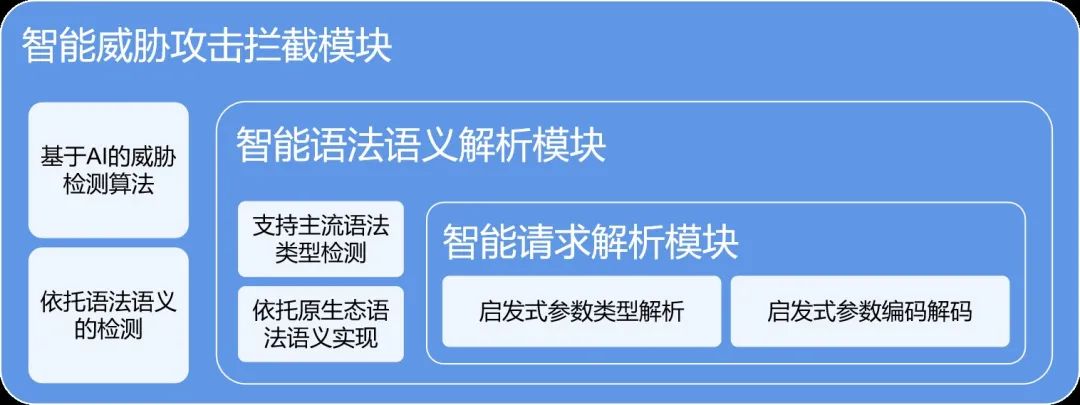 3)智能威胁攻击拦截模块:通过基于AI的威胁检测算法,提高语法语义的准确度和拦截率