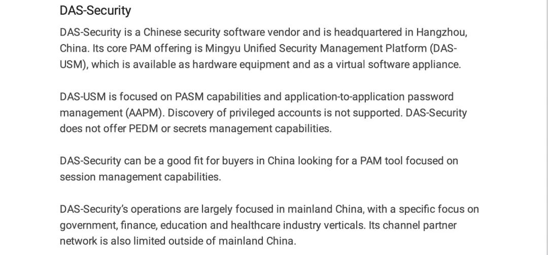 △ 2021Gartner亚太区特权管理魔力象限报告相关内容截图