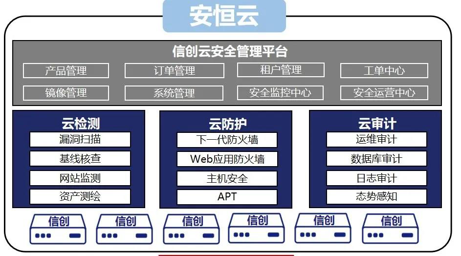 山西云时代联合安恒信息共同打造全方位信创安全解决方案。方案以安全通信网络、安全区域边界、安全计算环境的多重防御架构,提供持续覆盖信创环境整体安全防护的安全能力。方案通过构建鲲鹏、海光等高性能硬件,为用户构建一个统一管理、按需分配、安全能力完善的云安全资源池。通过多云管理打通华为云、浪潮云、阿里云、腾讯云等主流云平台,安全能力可以融合云平台中实现云原生安全,方便云平台统一管理。