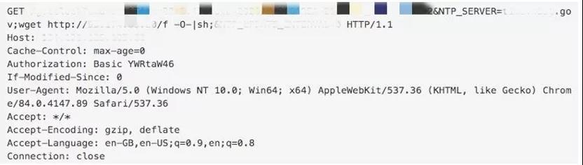 第1个漏洞利用了具有NTP服务器设置功能的Web服务中的命令注入漏洞。该服务无法清除HTTP参数NTP_SERVER的值,从而导致任意命令执行。