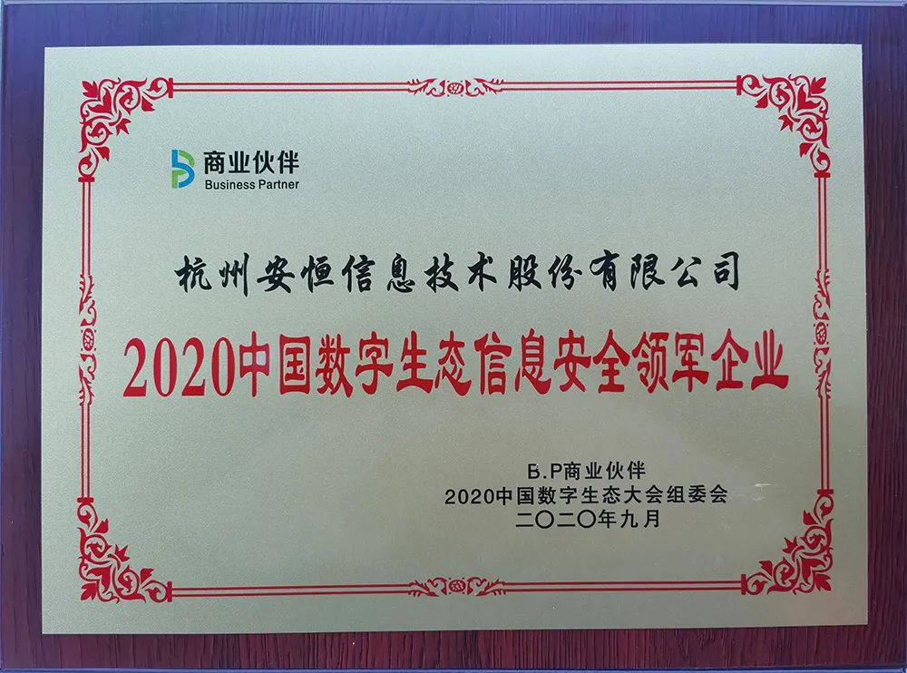 安恒信息荣获“2020中国数字生态信息安全领军企业”称号