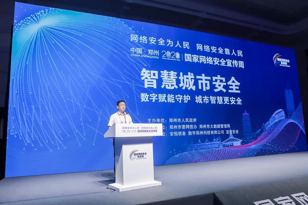 9月16日,2020年国家网络安全宣传周“智慧城市安全”论坛在郑州举行。本次论坛由郑州市人民政府主办,郑州市委网信办、郑州市大数据管理局承办,安恒信息等单位支持。郑州市人民政府副秘书长李兵、河南省大数据管理局副局长赵璐出席并讲话,郑州市大数据管理局局长郭程明主持。