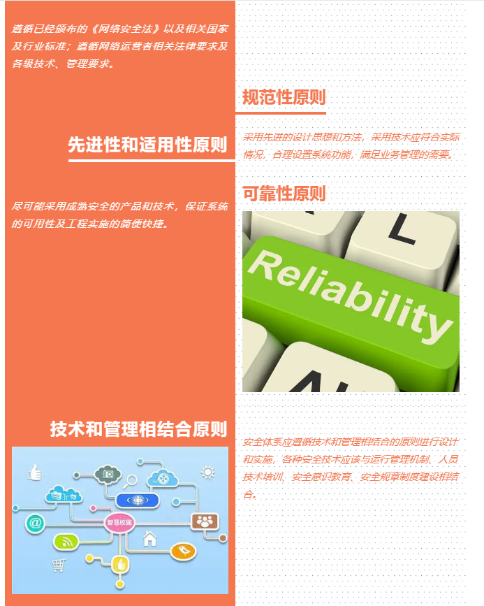 依据服务高校“摸底数、排隐患、抓整改”的校园网络安全工作原则,利用云计算、大数据,结合常态化网络安全管理制度,从“目标管理、风险监测、通报预警、处置跟踪、常态运营、人才培养”全流程落地网络安全建设工作。