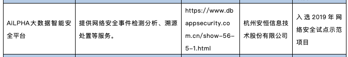 3月6日,为做好工业互联网、远程医疗、在线服务、云办公等新型应用的安全保障支撑,充分发挥网络安全公共服务平台支撑保障疫情防控和复工复产,安恒信息AiLPHA大数据智能安全平台以“提供网络安全事件检测分析、溯源处置等服务优势”入选网络安全公共服务平台列表,获得工信部的推荐!