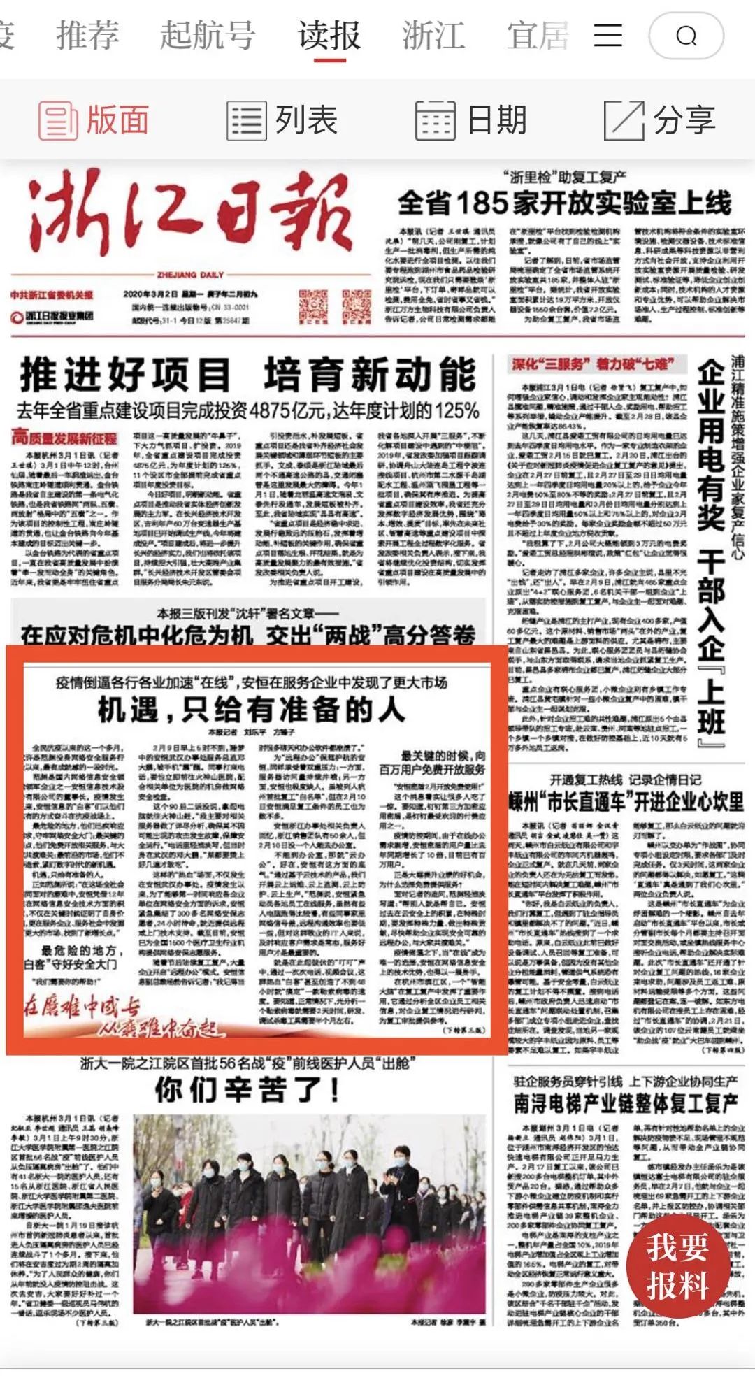 浙江日报头版:机遇,只给有准备的人