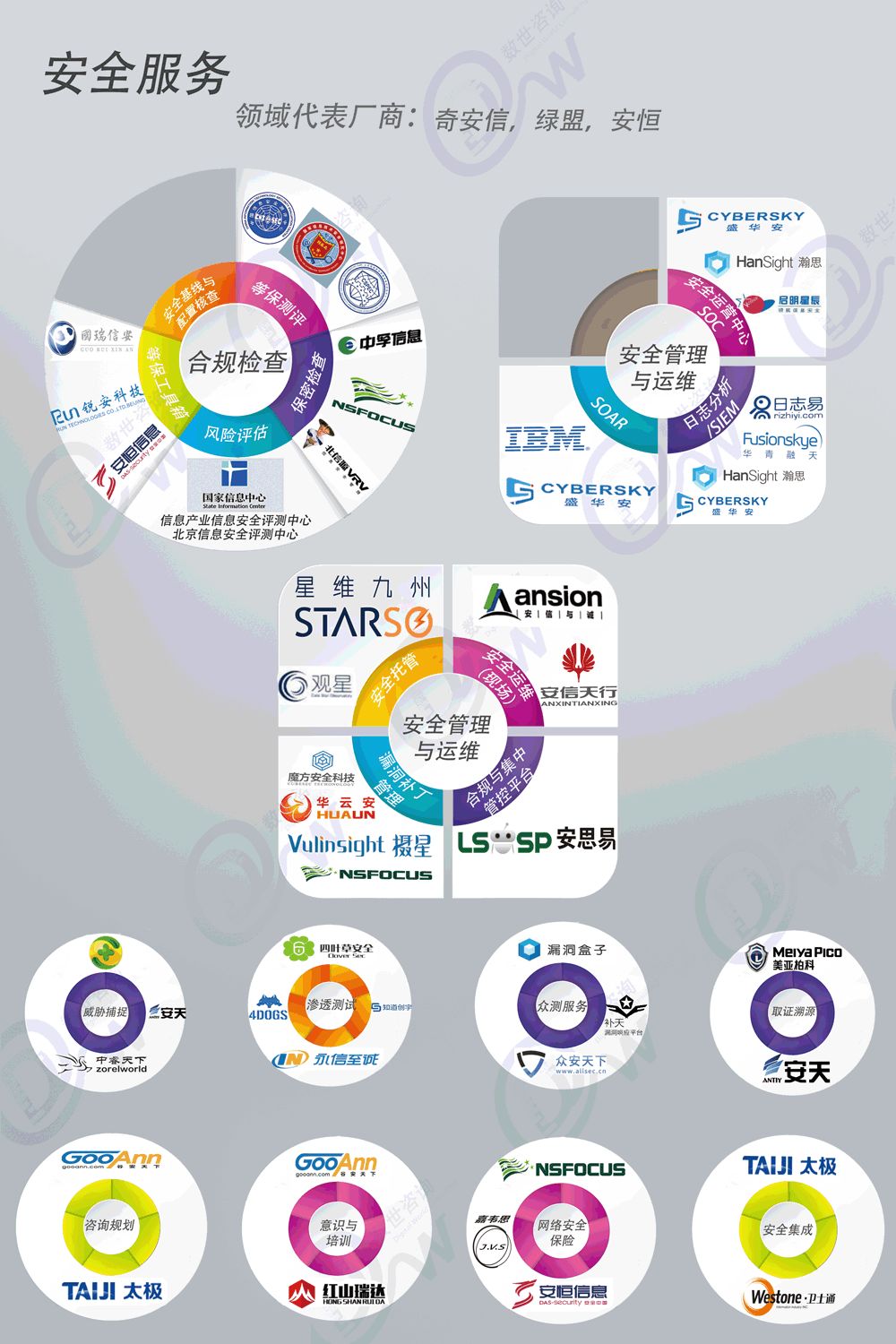 安恒信息入选“安全能力图谱”7大领域代表性厂商,包含工业互联网领域里的工业互联网安全(工业互联网平台安全)、计算环境领域里的云安全(安全云)、通用技术领域的审计、大数据安全、漏洞扫描,计算对象领域里的web安全(web漏洞扫描与应用监控、web应用防火墙)、端点安全(端点保护平台/端点检测与响应)、数据安全(数据库安全),访问与控制领域里的身份安全(堡垒机)、安全服务领域里的合规检查(等保工具箱)、网络安全保险,以及框架体系领域的态势感知。其中,特别强调了,安恒信息是安全服务全领域的代表厂商。