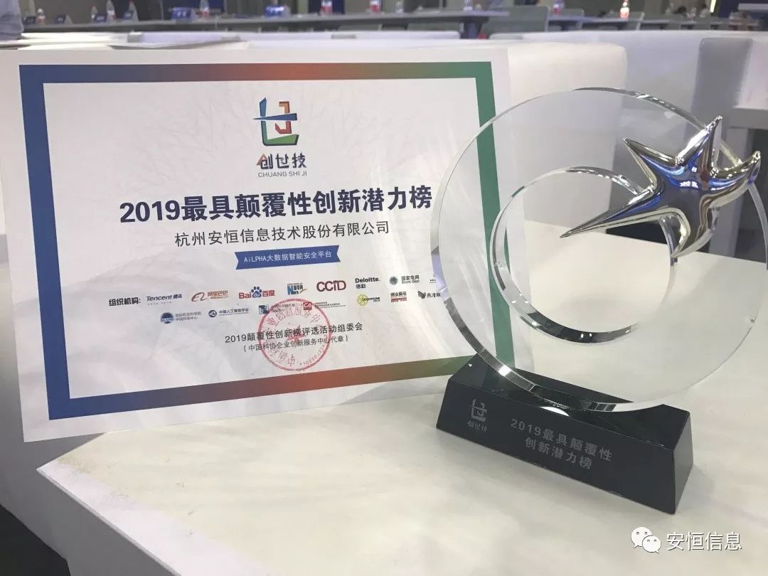 安恒AiLPHA又双叒叕获奖,入选 2019年最具颠覆性创新潜力榜