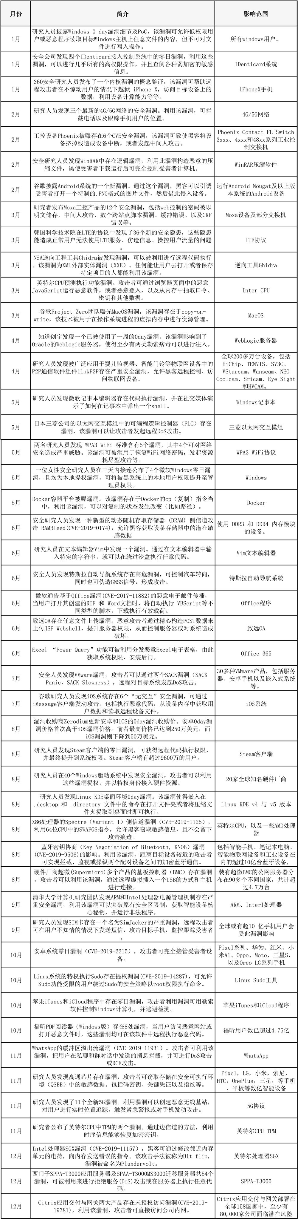 ✓通用型漏洞方面,底层硬/固件漏洞继续频发,协议漏洞、元老级漏洞、第三方代码共享漏洞依然是重大隐患。事件型漏洞方面,随着云的普及和智能设备的激增,亦呈爆发趋势。行业方面,随着工业互联网的日益发展,工业控制设备漏洞事件明显增多。