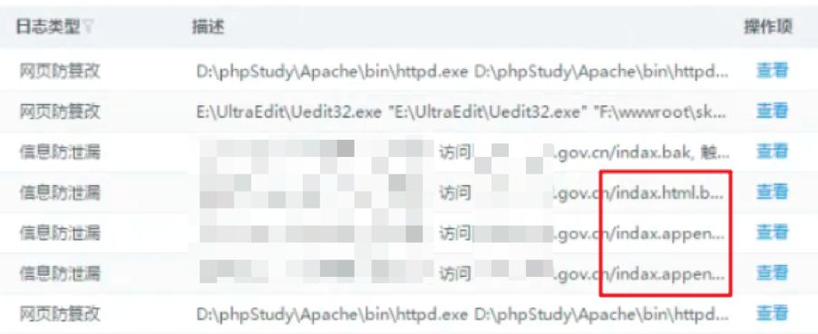 近期某政府网站被上报已被篡改为博彩页面。该单位正在测试网页防篡改系统,但所有规则都设置为不阻断、仅记录状态。通过分析防篡改日志可以发现篡改进程为网站后台进程,已被放置木马,并且首页文件index.html被替换为indax.html。