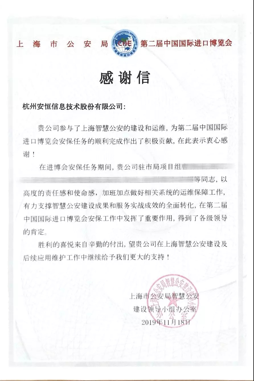 近日,我们收到这些感谢信,它们来自”中国国际进口博览局、中共上海市委网络安全和信息化委员会办公室、上海市公安局智慧公安建设领导小组办公室、浦东分局网络安全保卫支队、闵行区进博会网络安全工作组、国家会展中心(上海)、国网上海市电力公司信息通信公司......“