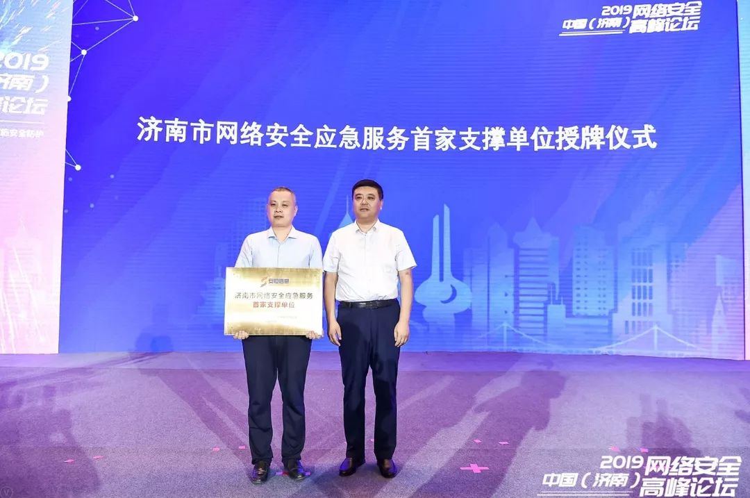 会上,中共济南市委网信办授予安恒信息“济南市网络安全应急服务首家支撑单位”;还举行了济南市公安系统网络与信息安全应急技术支援中心、济南市网络安全保护联盟的揭牌仪式。