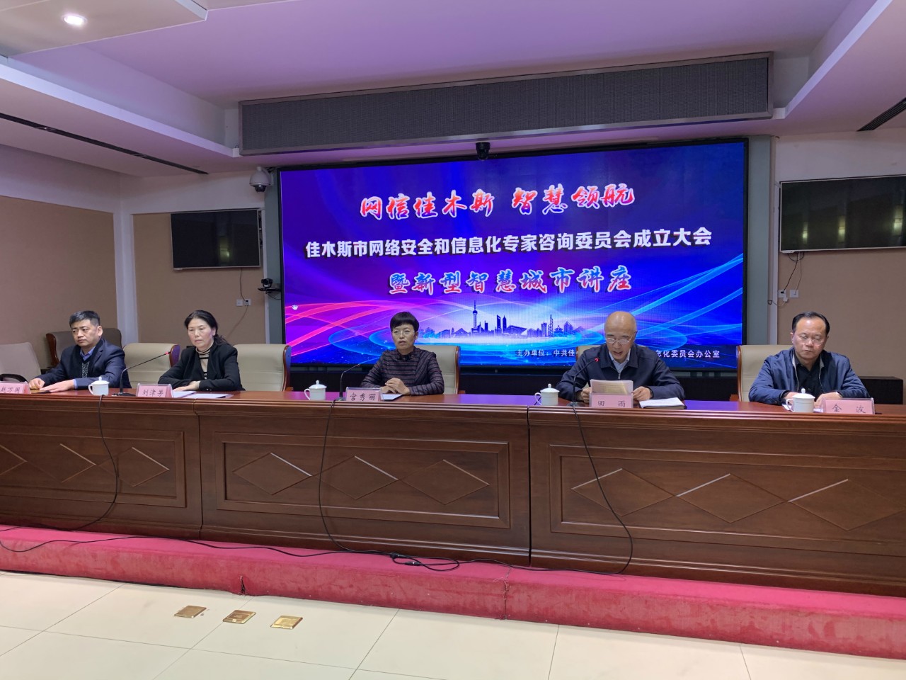 11月19日下午13时,“网信佳木斯·智慧领航”佳木斯市网络安全和信息化专家咨询委员会成立大会暨新型智慧城市讲座在市政府一号楼会议室举行。市委常委、宣传部部长、市网信专家咨询委员会主任宫秀丽,副市长、市网信专家咨询委员会副主任田雨出席会议。