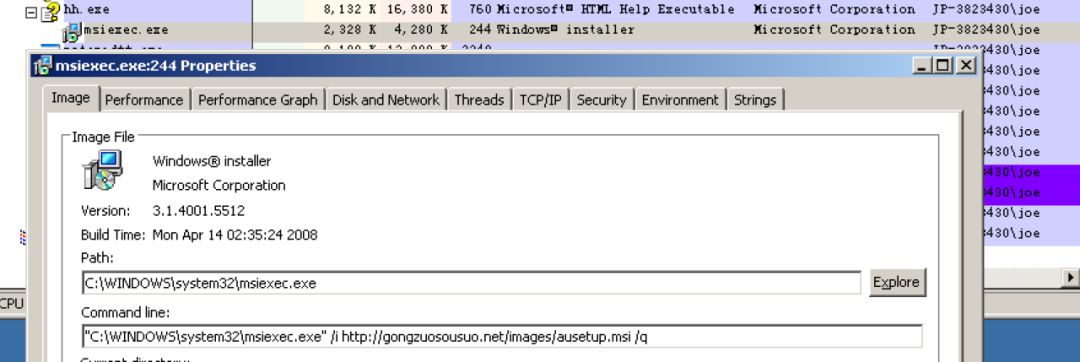 通过查看代码发现它会在后台通过msiexec命令去远程服务器下载msi文件