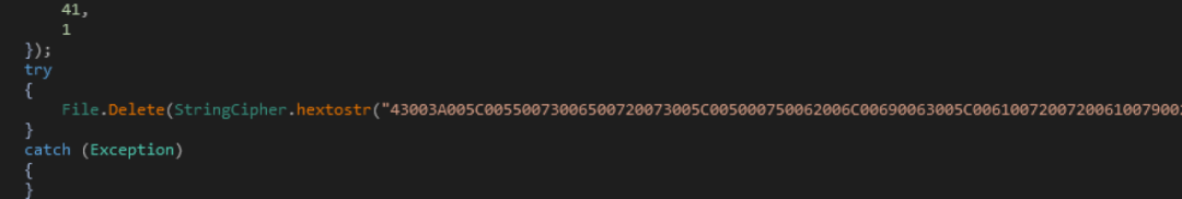 然后进行了删除,猜测这么做的目的是为了判断系统是否是win7及以上的系统,在WIN XP下无法发现C:\Users\Public路径。
