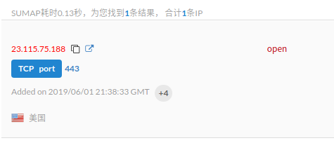 2019年9月美国宣布加强对朝鲜的制裁,本次分析的Lazarus样本活跃时期初步推测在该轮制裁之前。通过网络空间测绘探测技术,我们了解到IP:23.115.75.188在2019年6月1日开放过443端口: