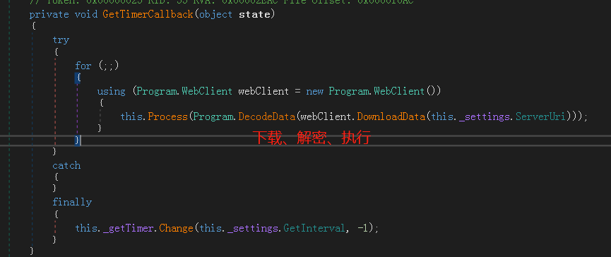 信息传输的加解密方法同白加黑利用阶段的PE解密,加密手段: