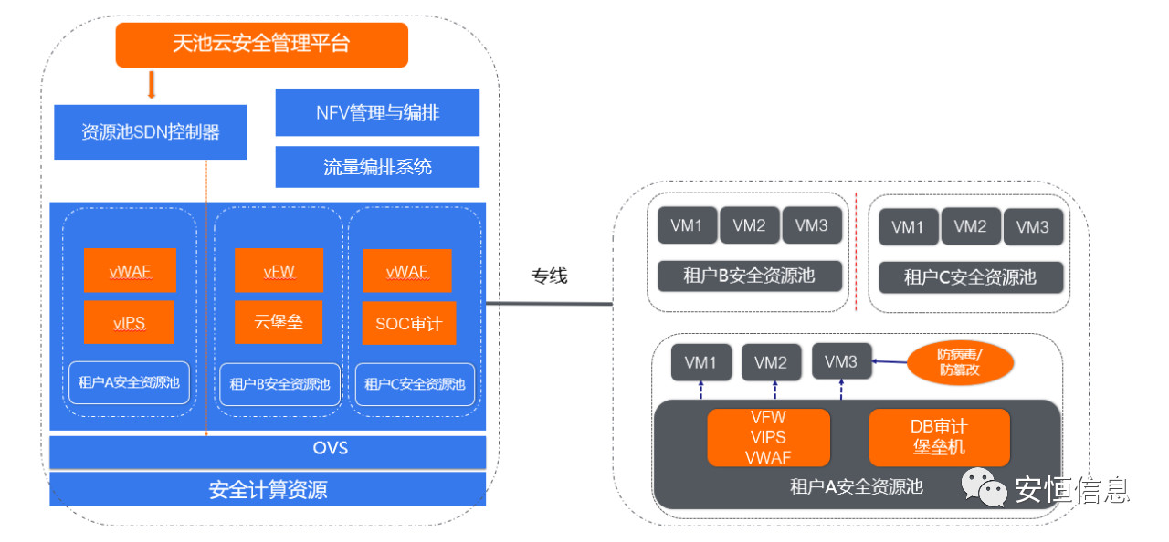 通过云计算虚拟化技术,把物理资源虚拟成安全资源池,为用户提供包含云监测、云防御、云审计等覆盖全生命周期的云安全产品服务,满足用户多样化的云安全需求。