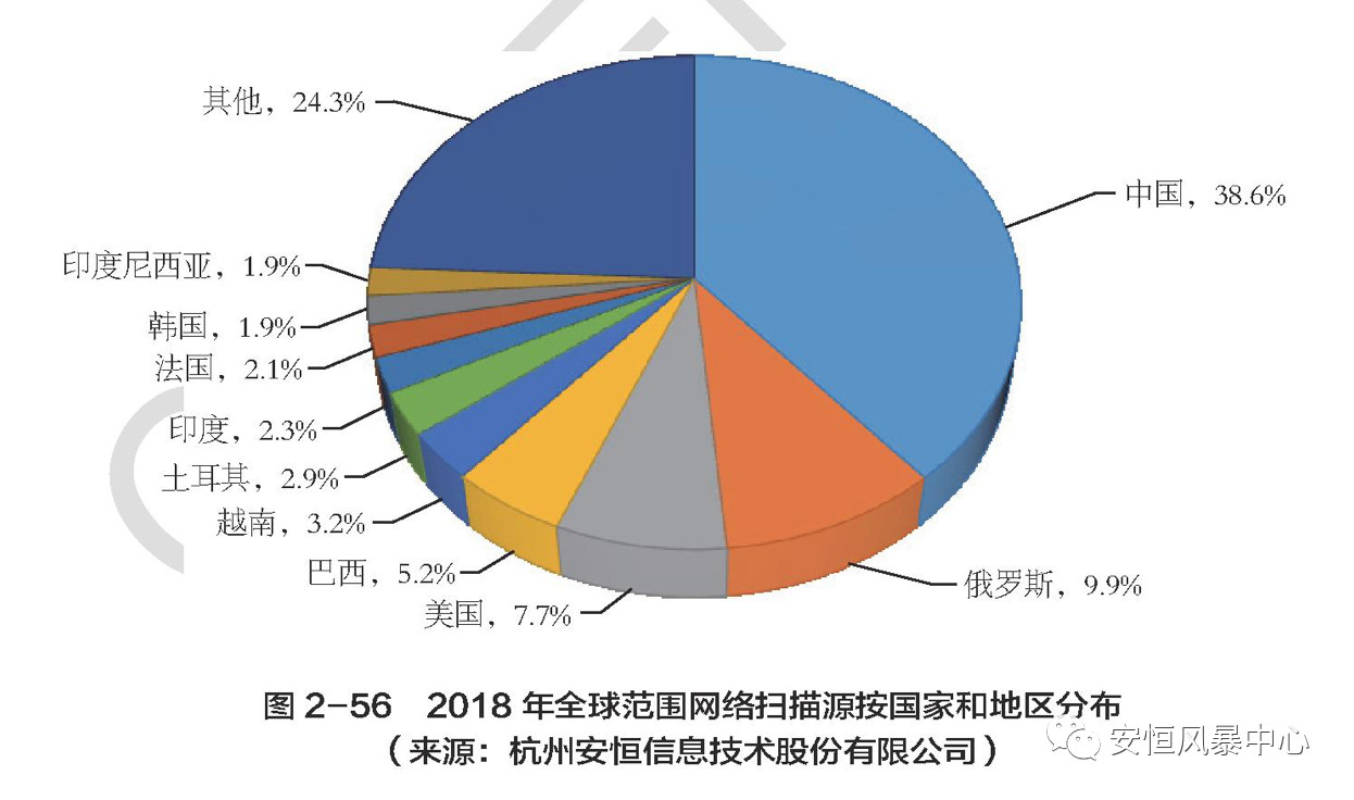 “2018年,亚洲色无码A片中文字幕-欧美日韩国产在线播-日本最新伦中文字幕-《人妻》波多野结衣-日韩在线视频中文字幕累计发现扫描源21.3万个,其中有38.6%的扫描源来自中国,9.9%是从俄罗斯发起的,美国、巴西、越南紧随其后,分别是:7.7%、5.2%、3.2%。2018年全球范围网络扫描源按国家和地区分布情况如图2-56所示。” 《2018年中国互联网网络安全报告》