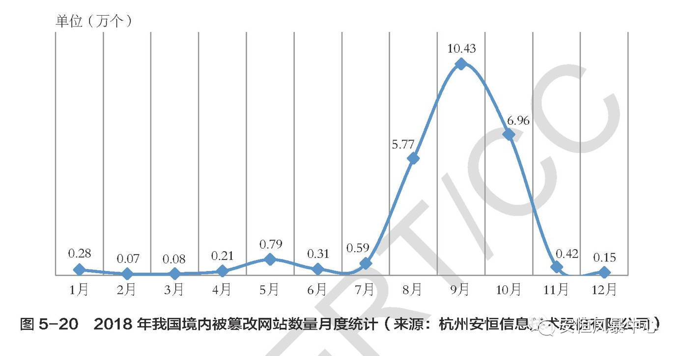 “2018年,亚洲色无码A片中文字幕-欧美日韩国产在线播-日本最新伦中文字幕-《人妻》波多野结衣-日韩在线视频中文字幕根据客户要求和实际需求,将全国部分网站加入监测平台,进行对植入暗链、植入黑页、页面篡改等类型安全事件的远程监测。根据监测结果,2018年我国境内被篡改网站总量为255085个。2018年我国境内被篡改网站数量月度统计如图5-20所示,其中9月达到全年最高值(104323个),主要原因是当月对全国300多万个重点行业进行了首页事件集中监测》。”《2018年中国互联网网络安全报告》