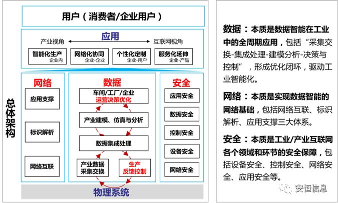 安全是工业互联网的三大核心内容之一。在工业互联网总体框架下,安全既是一套独立功能体系,又渗透融合在网络和平台建设使用的全过程,为网络、平台提供安全保障。构建工业互联网安全保障体系可从平台、网络、终端、数据四个方面考虑,涉及工业控制系统安全、企业信息管理系统安全、企业控制网络及管理网安全、互联网宽带网络安全、工业云安全和工业大数据安全等内容。
