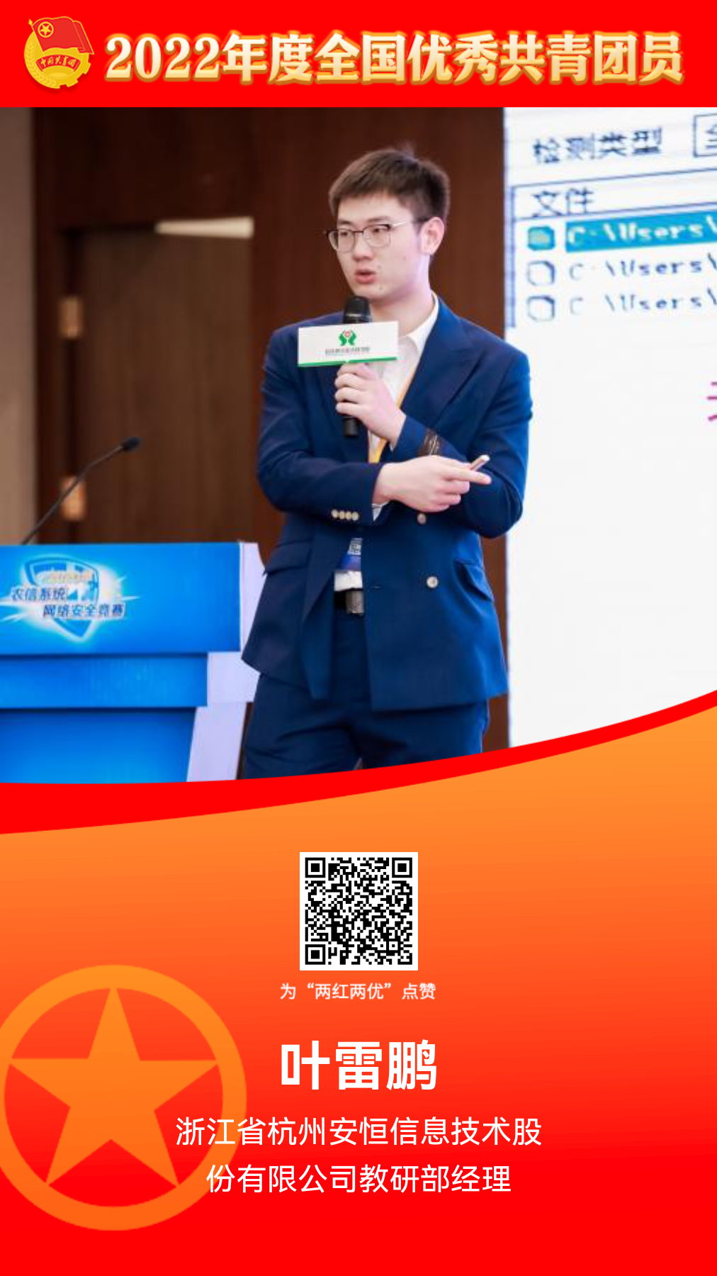 祝贺!安恒信息叶雷鹏荣获全国优秀共青团员荣誉称号