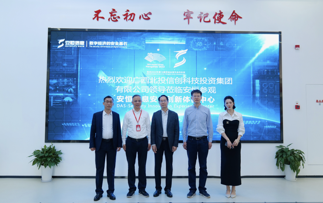 会前,北投信创集团领导一行参观了安全创新体验中心,了解安恒信息在商用密码安全、信创领域取得的成果。