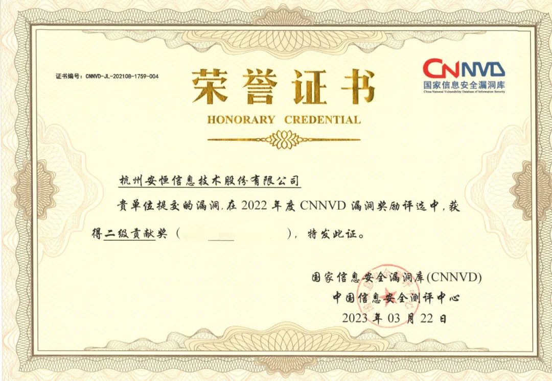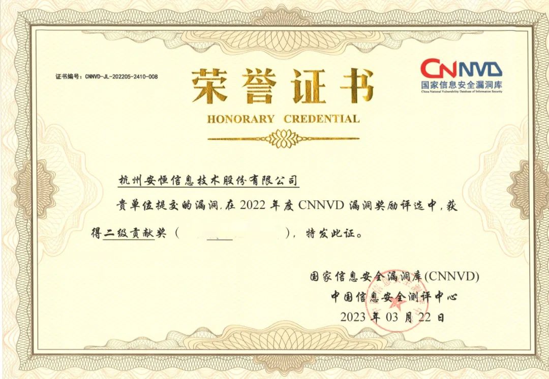 大满贯!安恒信息获CNNVD2022年度五项殊荣
