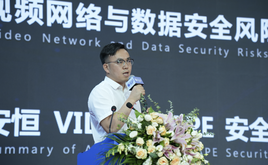 王聪在安博会视频网络与数据安全高端论坛上发表了题为《构建完整安全能力框架,赋能视频网络与数据安全》的演讲,介绍了安恒信息在视频网络与数据安全方面最新产品方案情况,同时向与会嘉宾分享了安恒VIDEO CAPE安全能力框架赋能视频网络与数据安全的最佳实践。