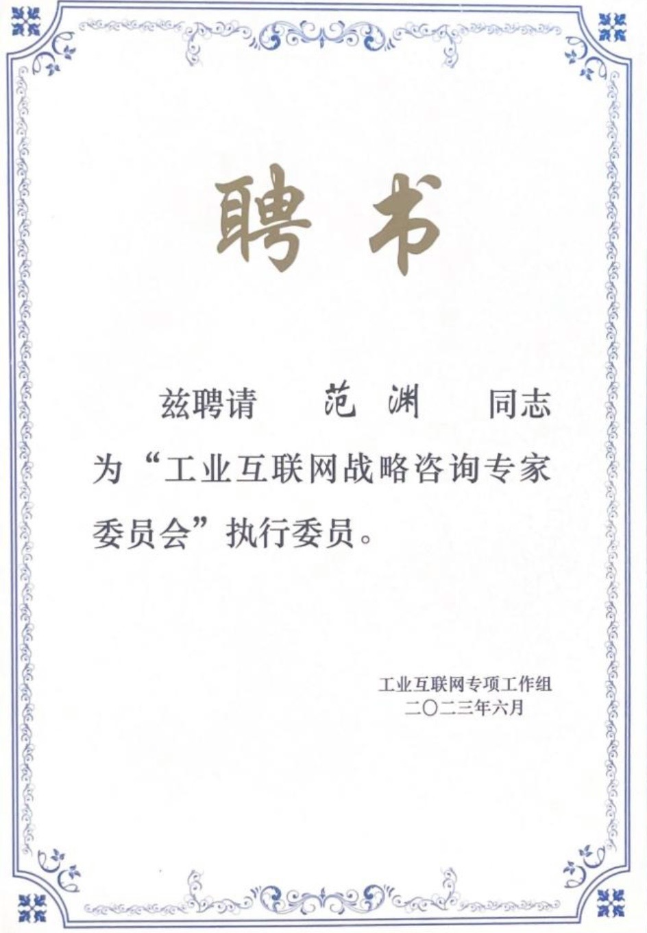 范渊受聘“工业互联网战略咨询专家委员会”执行委员