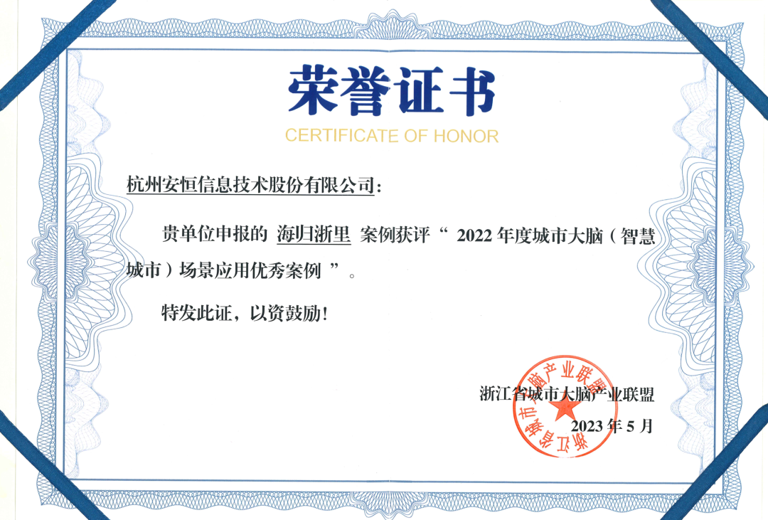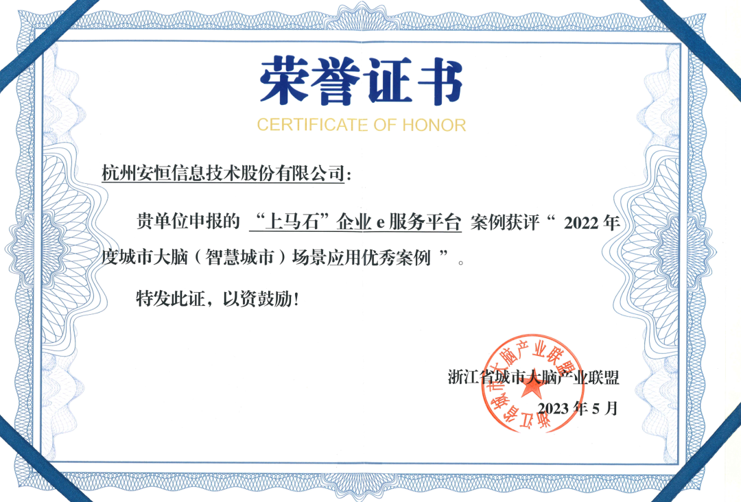 会上,安恒信息申报的海归浙里案例、“上马石”企业e服务平台两个案例双双入选“2022年度城市大脑(智慧城市)场景应用优秀案例”。