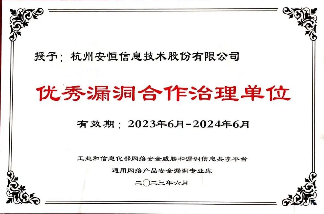 安恒信息获“优秀漏洞报送机构”“优秀漏洞合作治理单位”两项荣誉