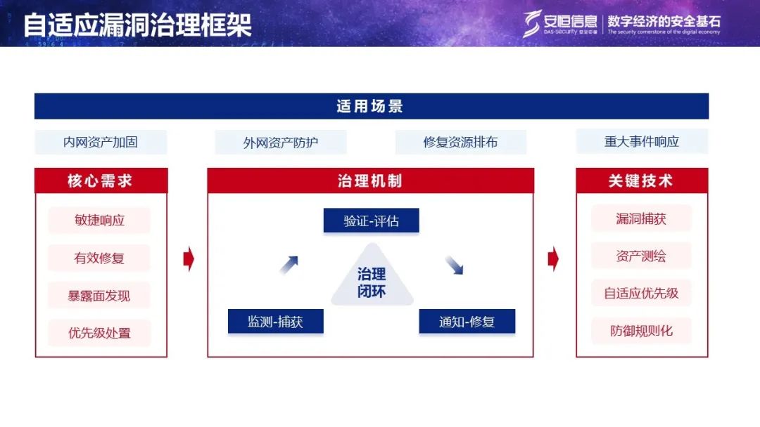 安恒信息中央研究院安全技术专家姚龙飞在会上就“自适应漏洞治理框架”进行分享:基于中央研究院提出的AVPT技术理念,实现同一个漏洞在不同客户视角中优先级不同,并与漏洞处置策略相结合,形成“监测-验证-通知”治理闭环,为客户提供更好的产品和服务。
