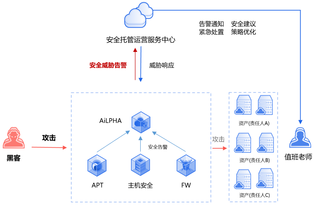 服务期间,三级云端安全专家团队7*24小时值守,远程协助值班老师完成安全威胁的监控、研判、分析工作。
