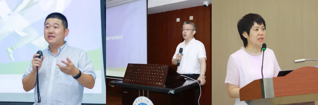 从左至右分别是电子科技大学信息与软件工程学院副院长朱国斌,成都信息工程大学区块链产业学院院长李飞,西南交通大学计算机与人工智能学院党委副书记肖静