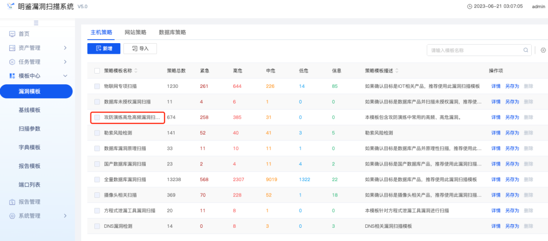 主机扫描任务和网站扫描任务新增“攻防演练高危高频漏洞扫描模板”,帮助客户快速定位高风险威胁,高效同时更省心。