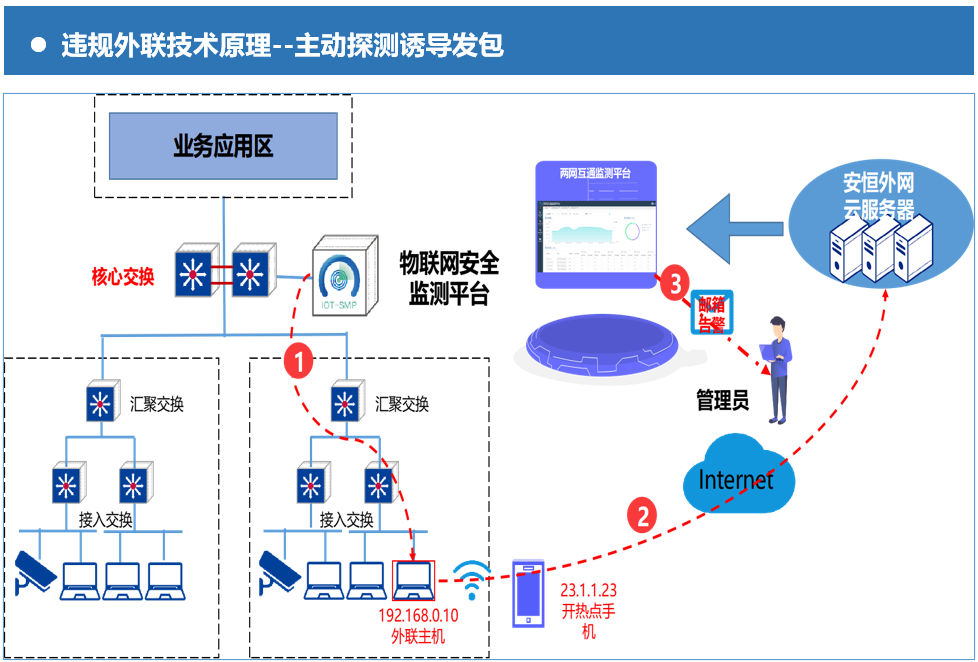 支持违规外联监测、网中网监测;可显示网闸设备、小型路由器、代理服务器等边界安全设备的监测信息。核心优势如下: