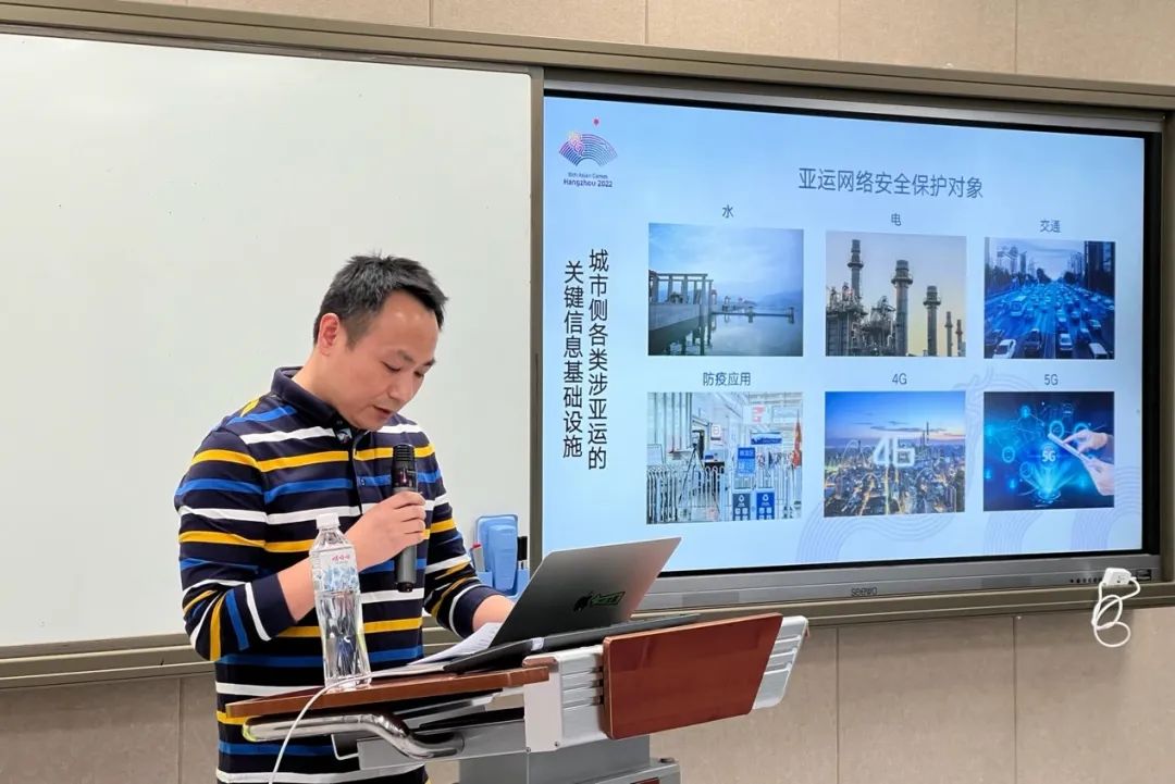 余杭区数据资源管理局领导、亚组委网络安全专家、杭师大亚运场馆代表、余杭区亚运专班技术保障组成员单位等出席活动,并就亚运信息化建设情况、总体网络安全策略、场馆网络安全保障等方面展开分享交流。