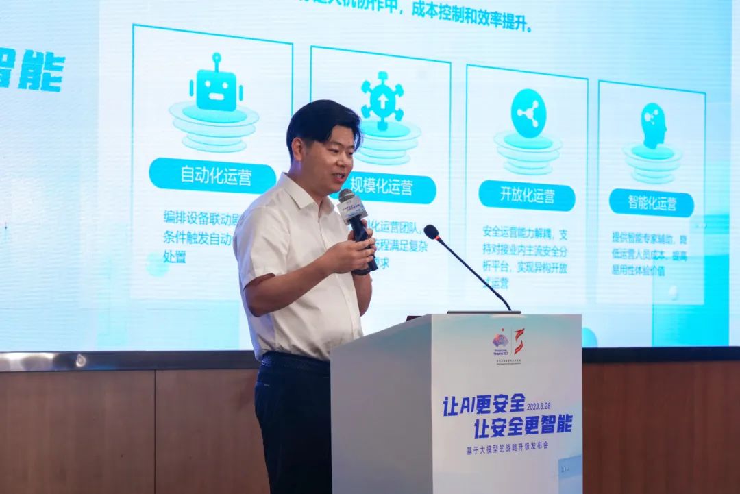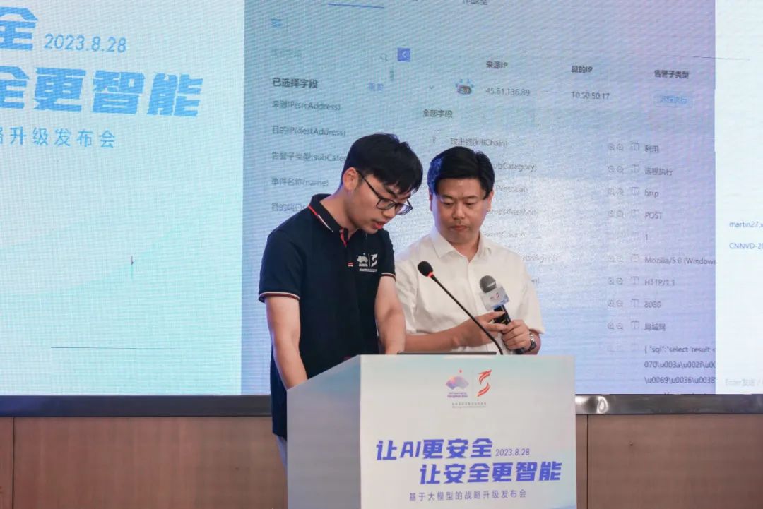 8月28日,让AI更安全,让安全更智能——基于大模型的战略升级发布会在安恒大厦举办,恒脑·安全垂域大模型首次公开亮相,基于安全垂域大模型的安全运营平台全新升级发布。