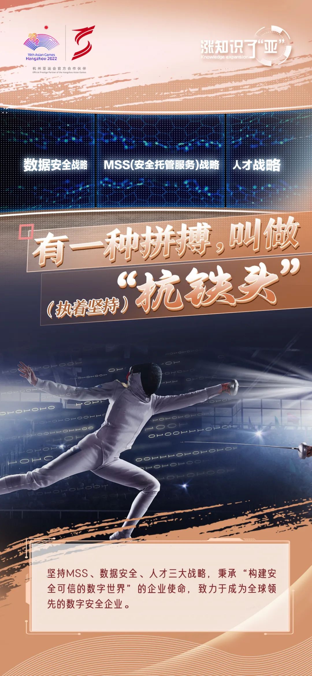 杭州亚运会即将拉开帷幕,安恒信息作为亚运会官方合作伙伴,提供多种网络安全技术和解决方案,组建专业团队为亚运会保驾护航。杭州,除了美丽的自然风光外,也拥有着别样人文情怀,杭州方言也极具魅力。这一特色向世界各国展示着杭州的历史文化,也为赛事增添了一份特别的魅力。安恒信息的网络安全建设如同杭州方言一样,历经时光的洗礼,蕴含着独特精彩的内涵。