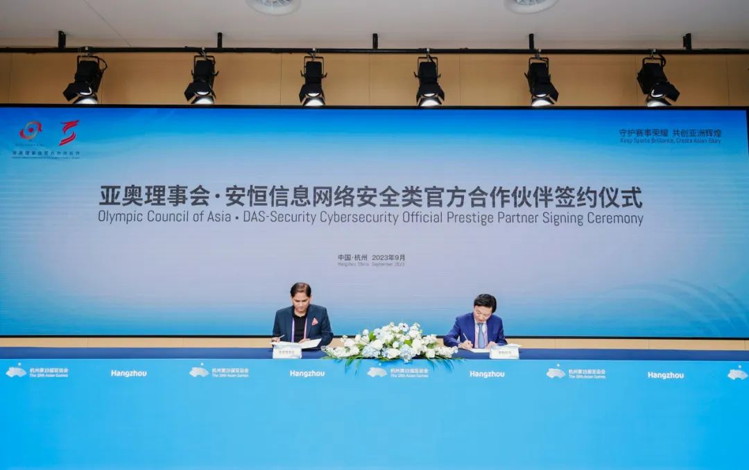 9月19日,亚洲奥林匹克理事会(以下简称亚奥理事会)与安恒信息在杭州亚运会主媒体中心(MMC)完成签约,安恒信息正式成为亚奥理事会网络安全类官方合作伙伴。