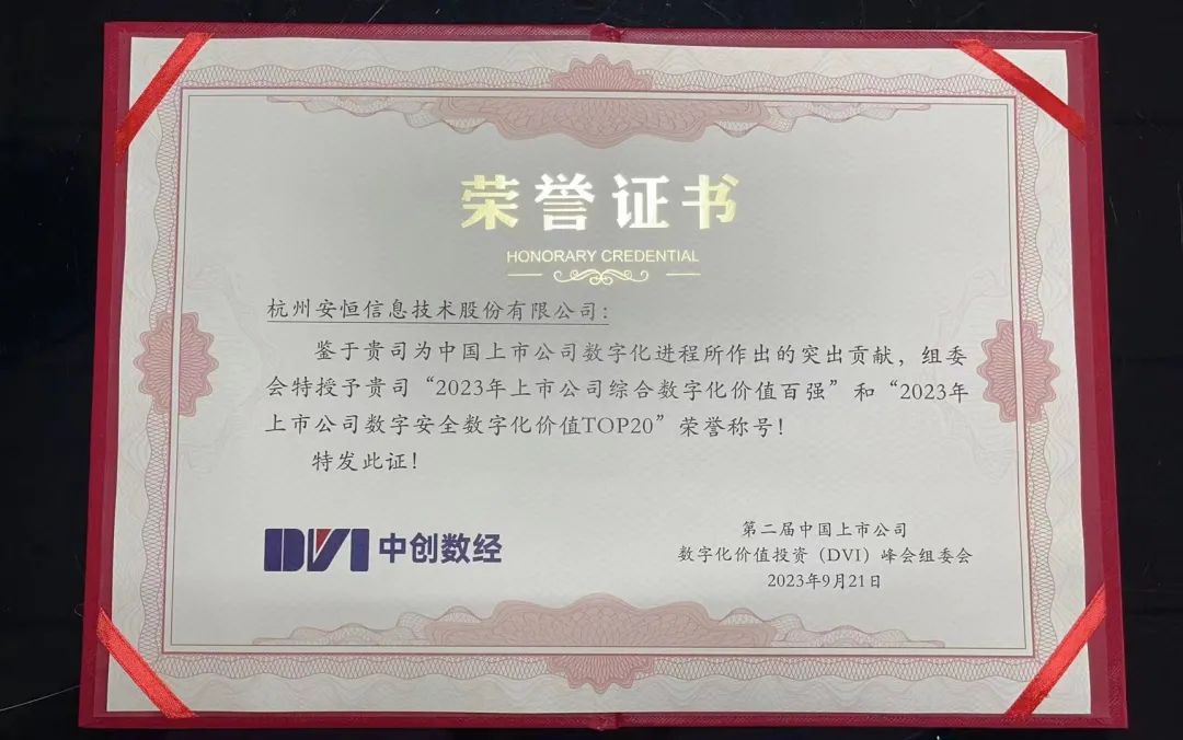 安恒信息一直致力于推动企业数字化转型工作,同时也加强自身数字化转型建设。此次入选2023年上市公司综合数字化价值百强名单,是对公司本身在数字化转型时代下,开拓创新、与时俱进的重要肯定。