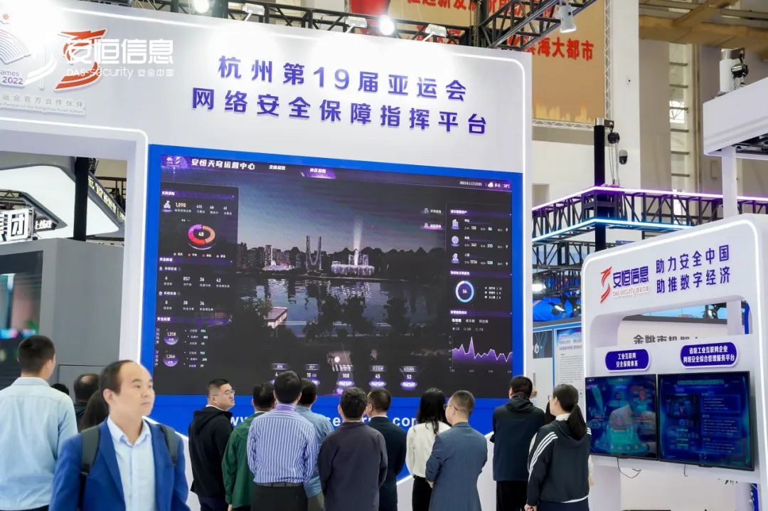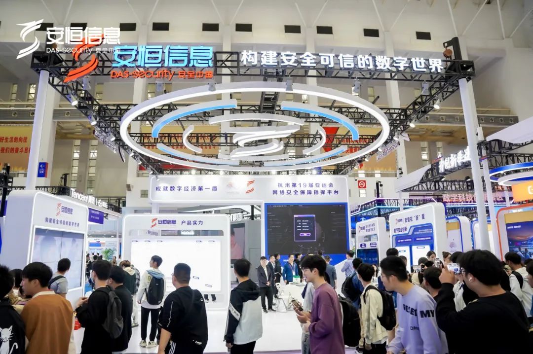 安恒信息在本次展位上,聚焦数字安全领域,围绕杭州亚运会网络安全保障、恒脑·安全垂域大模型、隐私计算平台与数据要素、云安全能力、MSS亚运天穹-新一代主动防御运营中心、工业互联网安全六大板块进行展示。