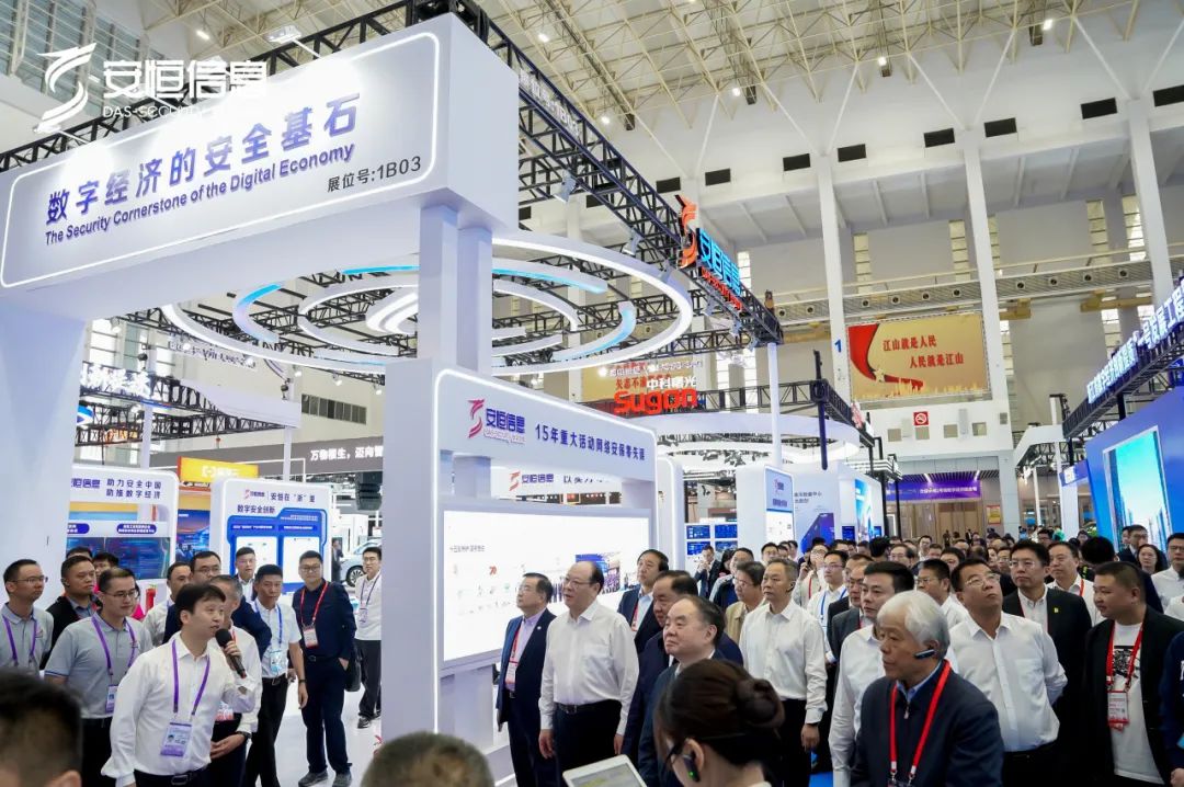 大会期间,中国工程院原院长周济,工信部原副部长、中国电子信息行业联合会会长陈肇雄,浙江省委常委、宁波市委书记彭佳学,宁波市委副书记、市长汤飞帆等领导一行莅临展位,聆听安恒信息在数字安全领域的相关成果介绍。