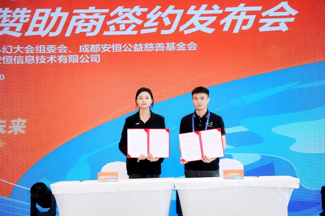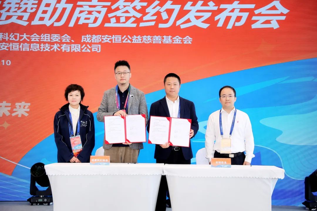 现场,在成都商报社党委委员、副总编辑何小梅和安恒信息高级副总裁吴永越的见证下,世界科幻大会主席团联合主席陈石先生与安恒信息四川公司总经理岳华龙代表世界科幻大会与安恒信息正式完成赞助合作签约。安恒信息将与世界科幻大会完成深度合作,推动科技与科幻的跨界融合。