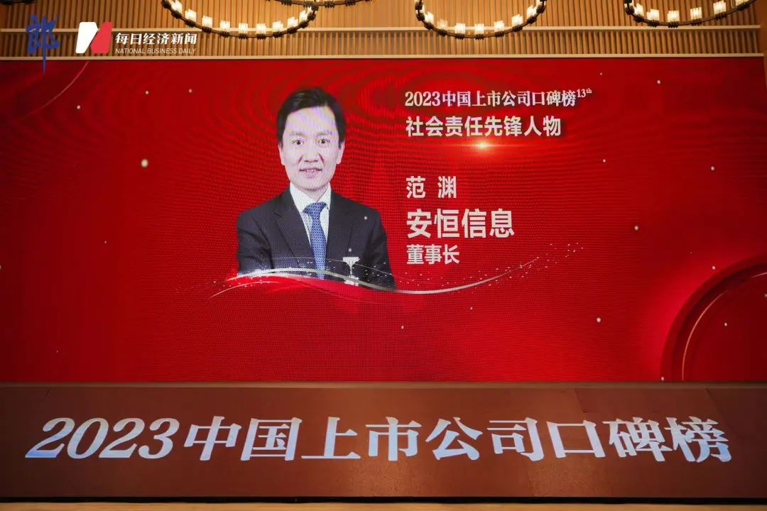 会议期间举办了2023中国上市公司口碑榜颁奖典礼,新希望、顺丰同城、拼多多等上市公司,获评“最具社会责任上市公司”,安恒信息董事长范渊荣获“2023中国上市公司口碑榜社会责任先锋人物奖”。